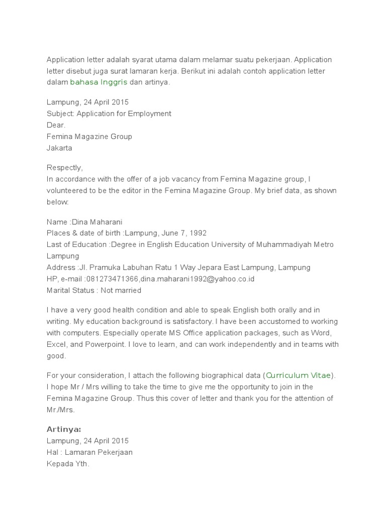 Cover Letter Artinya / How to write a cover letter learn how to make a cover letter that.. Create my cover letter example restaurant complaint letter to manager contoh application letter inggris cover sample. You should always include a cover letter, unless the job advertisement clearly says not to. See more ideas about cover letter for resume, lettering, letter example. Stand out as the right candidate for the job. Read this preschool teacher cover letter, also known as letter of intent or letter of application, and see if it captures your.